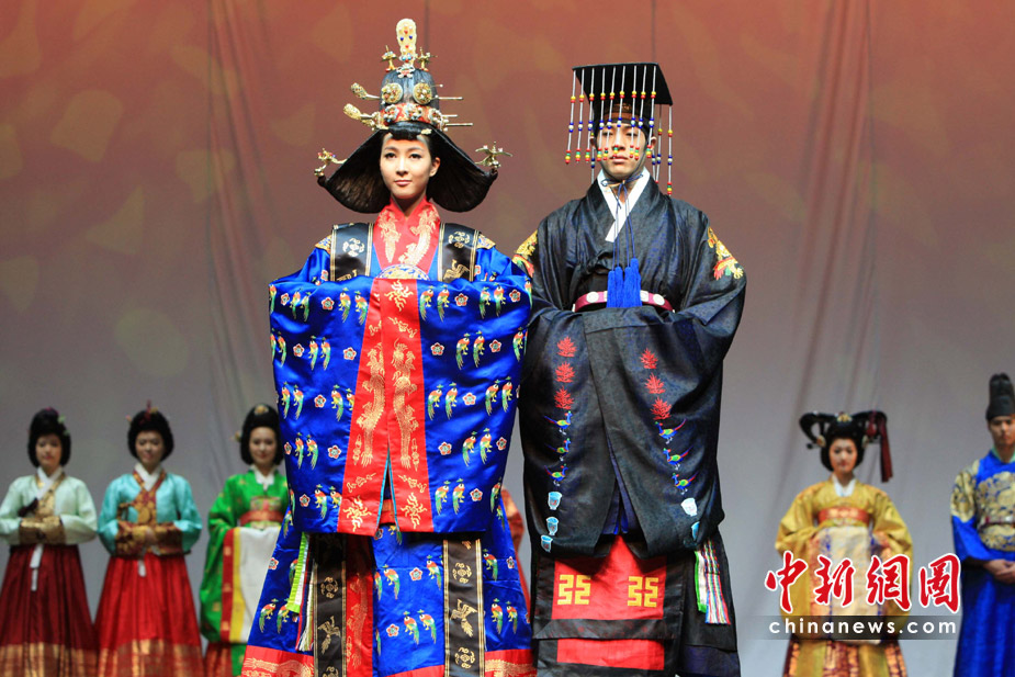 5月26日,韓服時裝秀在上海世博會上演,其宮廷服裝為別致內(nèi)容之一。當日是世博會韓國館日,韓國舉行多項文藝表演推廣該國文化。中新社發(fā) 潘索菲 攝