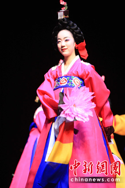 5月26日,韓服時裝秀在上海世博會上演,其宮廷服裝為別致內(nèi)容之一。當日是世博會韓國館日,韓國舉行多項文藝表演推廣該國文化。中新社發(fā) 潘索菲 攝