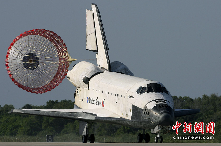當(dāng)時(shí)時(shí)間5月26日上午8點(diǎn)48分,美國航天飛機(jī)“亞特蘭蒂斯”號(hào)順利降落在佛羅里達(dá)州肯尼迪航天中心。這是“亞特蘭蒂斯”號(hào)的最后一次任務(wù)。美國現(xiàn)役3架航天飛機(jī)——“亞特蘭蒂斯”號(hào)、“奮進(jìn)”號(hào)和“發(fā)現(xiàn)”號(hào)將于今年全部退役。圖片來源:中國新聞網(wǎng)