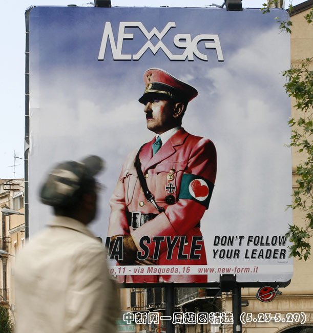 近日,意大利西西里首府巴勒莫街頭隨處可見一款備受爭議的海報——臭名昭著的納粹頭子希特勒化身“粉紅男郎”,納粹軍服胳膊上的納粹符號被大大的粉色心形圖案代替。圖片來源:中國新聞網(wǎng)>>點擊觀看詳細(xì)內(nèi)容