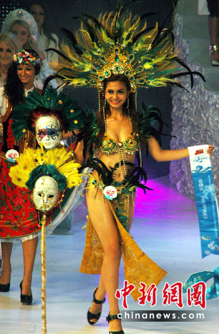 5月29日晚,第35屆國(guó)際比基尼小姐全球總決賽在三亞“美麗之冠”落下帷幕,22歲的羅馬尼亞選手Diana Irina Boanca摘得冠軍?倹Q賽還評(píng)選出了四季小姐,18歲的中國(guó)選手趙茜獲得“秋季小姐”,澳大利亞、委內(nèi)瑞拉和拉脫維亞選手分別獲得春、夏、冬季小姐。共有來(lái)自世界各地的64位佳麗參加了總決賽的角逐。當(dāng)晚,佳麗們展示了各自國(guó)家或地區(qū)特色的民族服飾,用不同的方式展示了不同風(fēng)格的比基尼“秀”,性感迷人。 中新社記者 尹海明攝