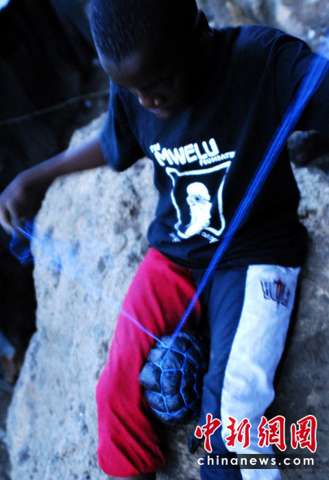 生活在肯尼亞首都內(nèi)羅畢(Nairobi) Muthare難民營的小孩兒沒有能力買足球、足球鞋,更別說專業(yè)足球隊員穿的成套的球衣了。但是這些沒有給他們對足球運(yùn)動的喜愛產(chǎn)生任何影響。孩子們從當(dāng)?shù)氐睦褤靵硭芰峡诖退芰纤槠,自己動手做“足球”?圖片來源:CFP