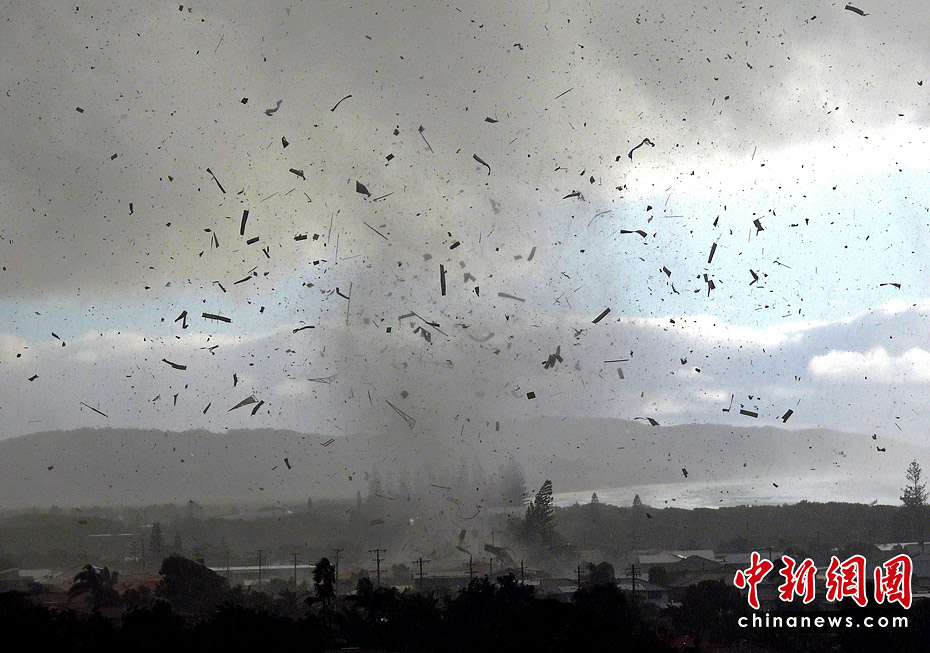 6月3日,澳大利亞新南威爾士州海濱城鎮(zhèn)倫諾克斯黑德遭到龍卷風(fēng)襲擊,大樹被連根拔起,屋頂被掀翻,重型拖車也被拋到半空中。數(shù)千所民居停電。一共有12所房屋在這場龍卷風(fēng)中被摧毀,6人受傷,傷勢不重。所幸沒有人員死亡的報告。圖片來源:中國新聞網(wǎng)