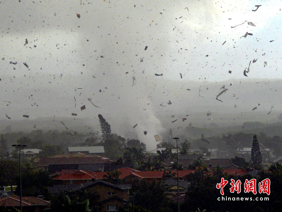 6月3日,澳大利亞新南威爾士州海濱城鎮(zhèn)倫諾克斯黑德遭到龍卷風(fēng)襲擊,大樹被連根拔起,屋頂被掀翻,重型拖車也被拋到半空中。數(shù)千所民居停電。一共有12所房屋在這場(chǎng)龍卷風(fēng)中被摧毀,6人受傷,傷勢(shì)不重。所幸沒(méi)有人員死亡的報(bào)告。圖片來(lái)源:中國(guó)新聞網(wǎng)