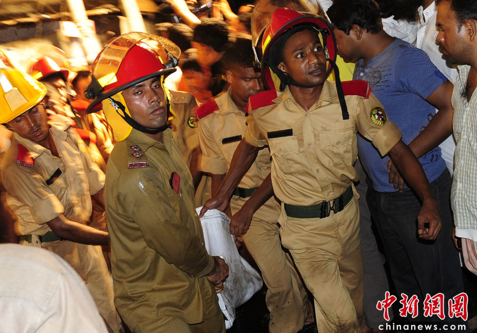 6月3日,孟加拉國首都達卡夜間發(fā)生一起重大火災,到目前為止已造成至少87人死亡,上百人受傷。圖為火災現(xiàn)場消防員抬出一具遇難者遺體。圖片來源:中國新聞網