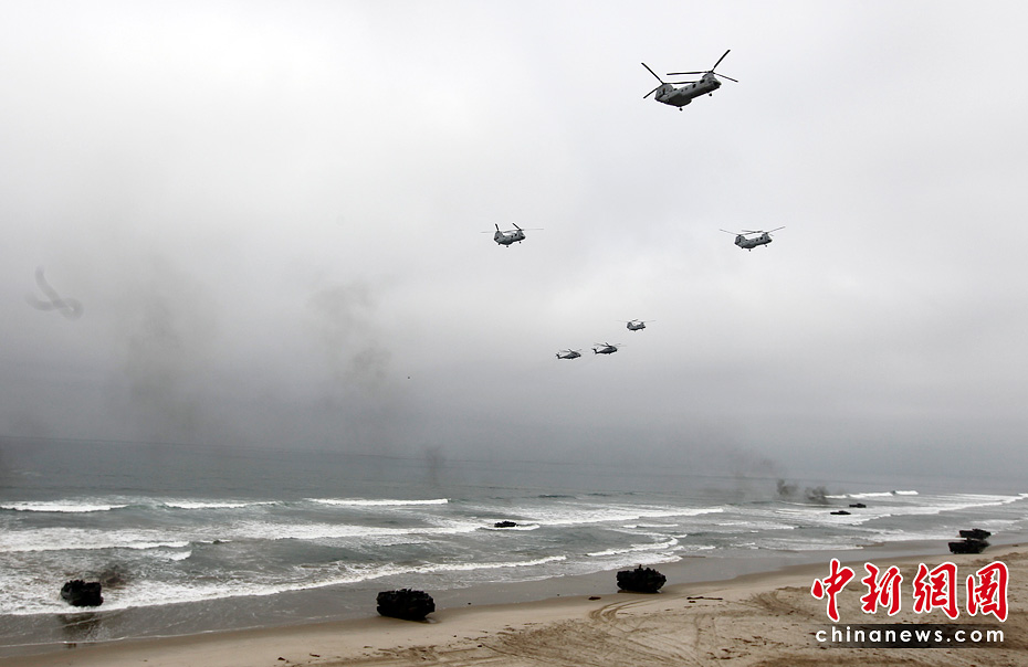 當?shù)貢r間6月4日,約5000名水兵和陸戰(zhàn)隊員在美國加利福尼亞州舉行了代號為“黎明突擊”的搶灘登陸軍事演習(xí)。圖片來源:中國新聞網(wǎng)