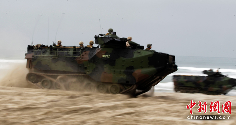 當(dāng)?shù)貢r(shí)間6月4日,約5000名水兵和陸戰(zhàn)隊(duì)員在美國(guó)加利福尼亞州舉行了代號(hào)為“黎明突擊”的搶灘登陸軍事演習(xí)。圖片來源:中國(guó)新聞網(wǎng)