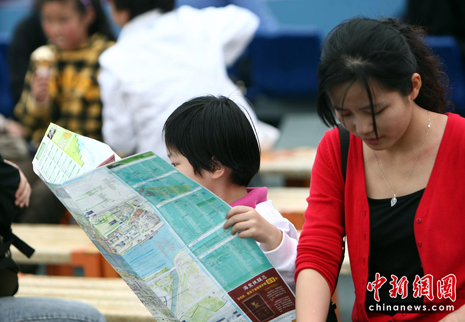 截至6月5日19點30分,上海世博會累計參觀者已超過1000萬人次。據(jù)悉,上海世博會的規(guī)劃用地為5.28平方公里,約242個國家和國際組織參展分布在浦東和浦西兩大區(qū)域。要想在這么大的地方找到自己想去的地方,那么世博地圖就是必須的裝備。圖為上海世博園內游客正在地圖上尋找自己要去的地方。中新社記者 杜洋 攝