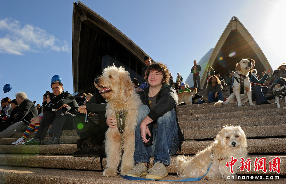 6月5日,澳大利亞悉尼歌劇院外舉辦了全球首場(chǎng)狗能聽懂的音樂會(huì),約有1000人帶著數(shù)百只愛犬在劇院前庭和階梯落坐,聆聽“狗的音樂”,整場(chǎng)音樂會(huì)全長(zhǎng)20分鐘。圖片來源:中國新聞網(wǎng)