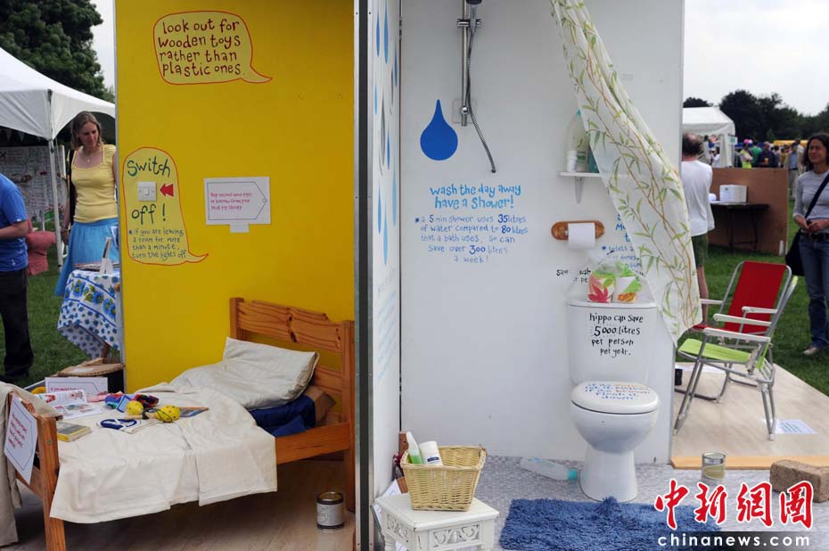 當(dāng)?shù)貢r(shí)間2010年6月6日,英國(guó)倫敦舉行卡姆登綠色市集(Camden Green Fair),這是英國(guó)倫敦每年環(huán)保領(lǐng)域的“重頭戲”。本屆市集的主旨是要喚起大眾對(duì)環(huán)境問題的關(guān)注,選擇更加可持續(xù)發(fā)展的生活方式。據(jù)活動(dòng)主辦方預(yù)計(jì),本屆市集將吸引來自英國(guó)各地和世界各國(guó)的2萬多人參加。圖為“家”的模型,共分為四部分:客廳、兒童臥室、衛(wèi)生間、 廚房。設(shè)計(jì)的每個(gè)小細(xì)節(jié)都體現(xiàn)出設(shè)計(jì)者“讓生活更美好”的理念。Fiona/攝 Fiona 馬小剛/文