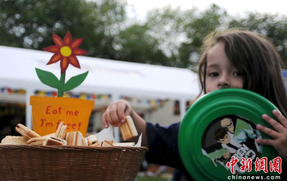 當(dāng)?shù)貢r(shí)間2010年6月6日,英國倫敦舉行卡姆登綠色市集(Camden Green Fair),這是英國倫敦每年環(huán)保領(lǐng)域的“重頭戲”。本屆市集的主旨是要喚起大眾對環(huán)境問題的關(guān)注,選擇更加可持續(xù)發(fā)展的生活方式。據(jù)活動(dòng)主辦方預(yù)計(jì),本屆市集將吸引來自英國各地和世界各國的2萬多人參加。圖為免費(fèi)的素點(diǎn)心深受小朋友喜愛。Fiona/攝 Fiona 馬小剛/文