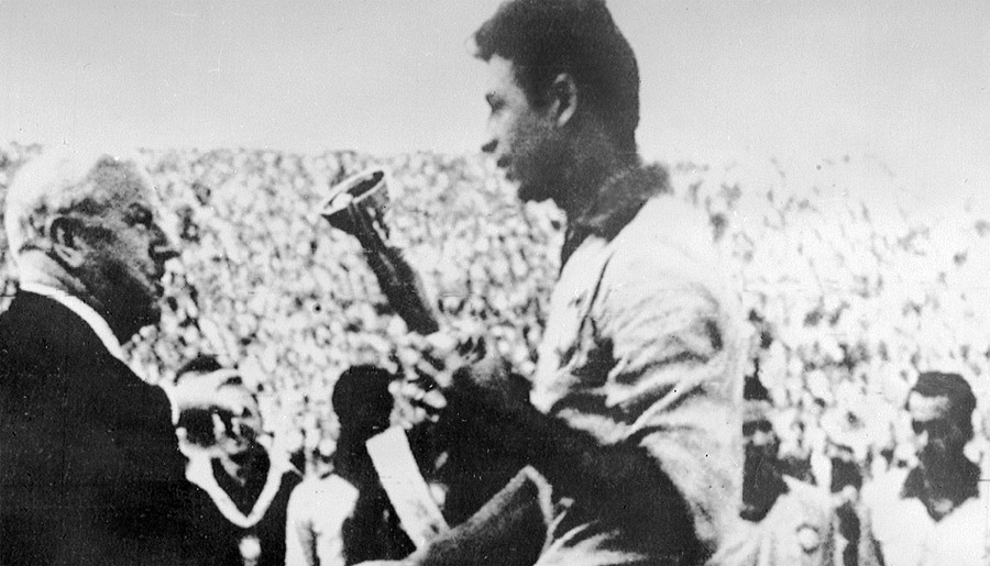 1962年世界杯在南美洲的智利舉行,巴西的頭號明星是29歲的加林查,一個(gè)綽號“小鳥”、雙腿天生有殘疾的人。在淘汰賽3比1擊敗英格蘭、4比2勝智利的比賽中,加林查各進(jìn)2球。世界杯結(jié)束后,巴西隊(duì)堅(jiān)持進(jìn)攻的打法征服了許多歐洲教練……
