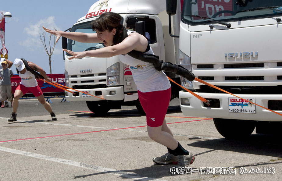 6月8日,以色列在海濱城市特拉維夫舉行了拉卡車大賽。比賽要求將一臺7.5噸的卡車拉到30米以外,用時最短者為勝者。該項賽事不但吸引了世界上眾多男性大力士,更有許多女性大力士出戰(zhàn)。圖片來源:中國新聞網(wǎng)>>點擊觀看詳細內(nèi)容