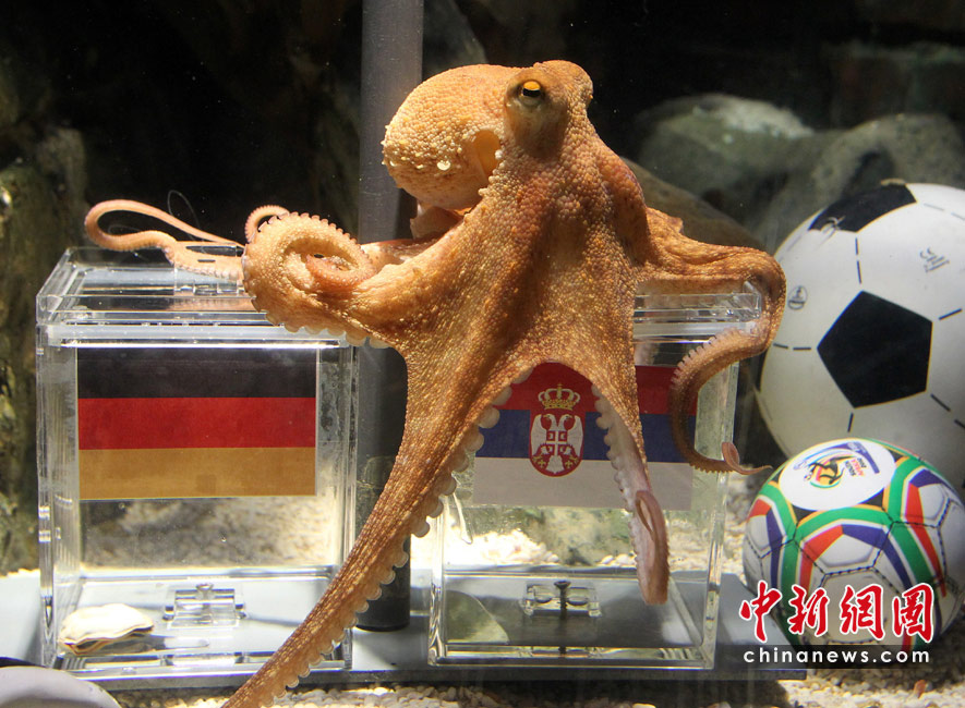 當(dāng)?shù)貢r間6月15日,德國北部,水族館里的海洋生物爭搶填滿飼料的足球。