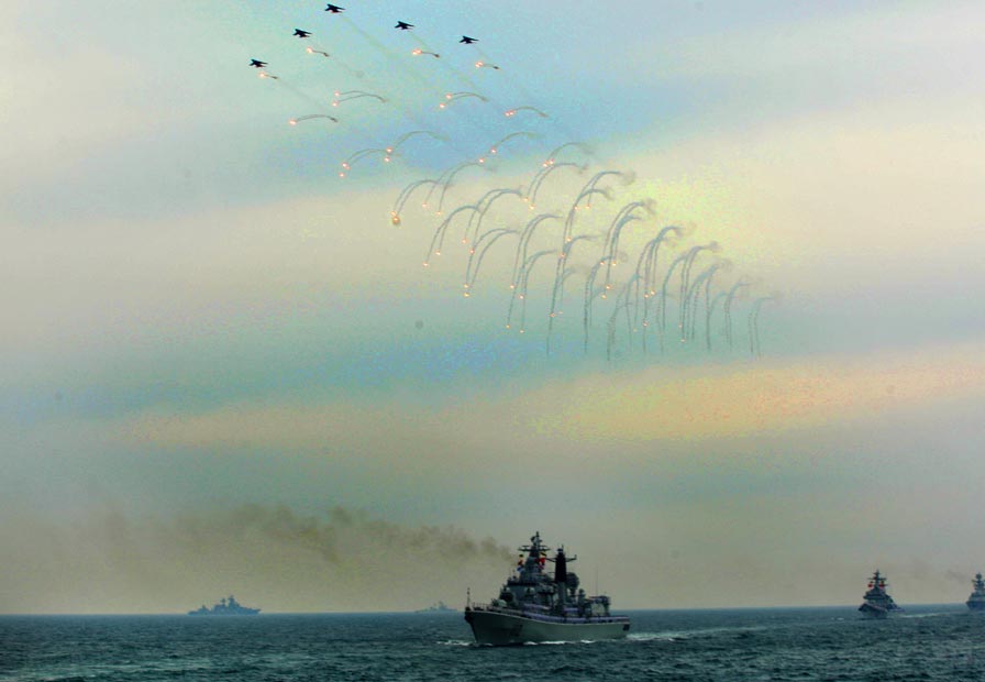 4月23日下午,為紀念中國人民解放軍海軍成立60周年,中國歷史上的首次多國海軍檢閱活動在青島附近黃海海域舉行。>>海軍閱兵專題:青島“論艦”