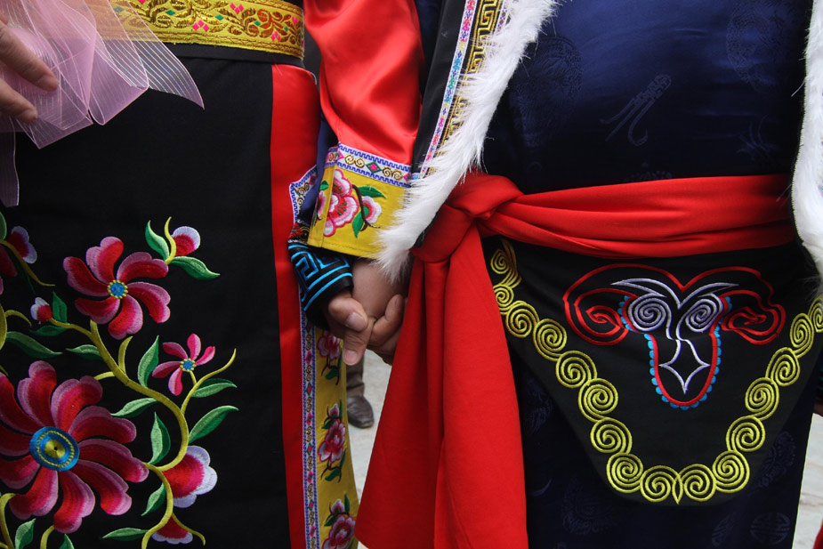 4月26日,四川省北川縣政府在擂鼓鎮(zhèn)吉娜羌寨為20對“5·12”大地震后重組家庭夫婦舉行集體婚禮。北川官方為他們舉行壩壩喜宴,每對新人約請8名親朋好友參加;閼c活動結(jié)束后,新人們將前往海南,享受政府提供價值10萬元的厚禮——三亞五日蜜月旅行。這是北川自2003年成立羌族自治縣以來舉行的首場集體婚禮。由政府出資,專為北川籍震后重組家庭操辦的。此次活動有利于災民看到人生的希望,走出地震陰影,開始新的生活,“建起精神家園”的意義。 中新社發(fā) 郭國權(quán) 攝