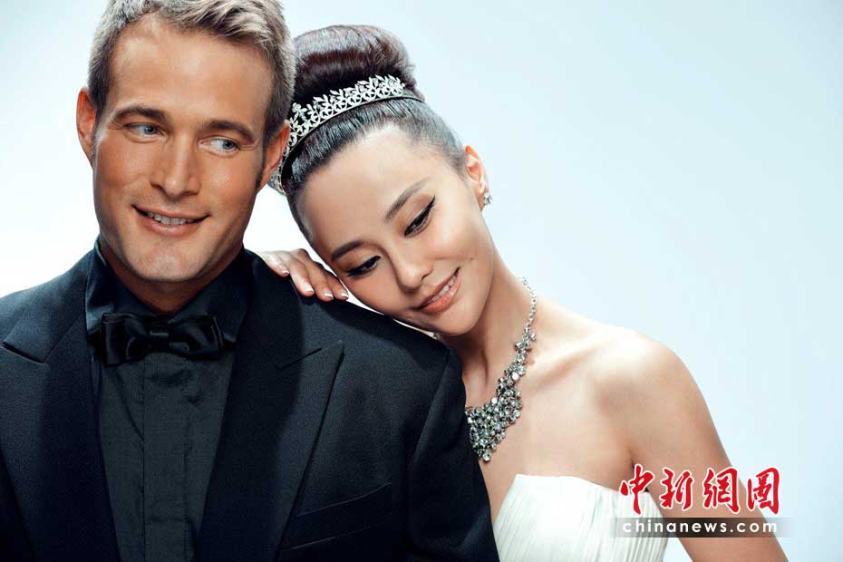 在婚紗照中,馬雅舒身著昂貴的婚紗再次秀起了“鴿子蛋”鉆戒,幸福的感覺溢于言表,而她的洋老公也得以“廬山現(xiàn)真人”。