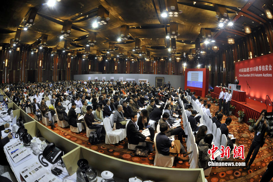 11月20日晚,在中國嘉德2010秋季拍賣會“秋光萬華——清代宮廷藝術集粹”專場中,王羲之草書《平安帖》以人民幣三億零八百萬成交。圖為該專場拍賣現場。中新社 寇勤 攝