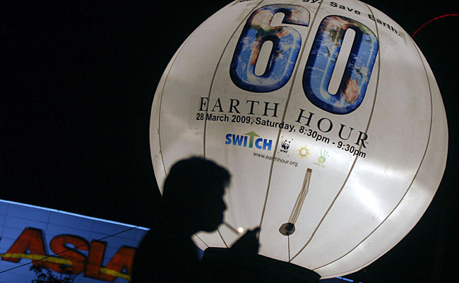 菲律賓馬尼拉:3月28日,在菲律賓首都馬尼拉,人們將印有“地球一小時(shí)”字樣的氣球升起。