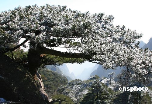 12月6日,安徽黃山風(fēng)景區(qū)迎來今年入冬以來第一場(chǎng)雪。7日,雪止轉(zhuǎn)晴,氣溫驟降,黃山始信峰景區(qū)出現(xiàn)晶瑩剔透的雪松奇觀,“處處皆是琉璃界、時(shí)時(shí)身在水晶宮”的奇妙感覺,是一道獨(dú)具魅力的迷人景色,令游客嘆為觀止。中新社發(fā) 方也廣德 攝