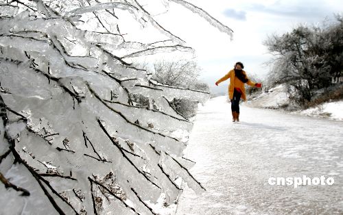 1月12日,雪后的江蘇連云港美不勝收。11日夜間連云港降下2008年第一場(chǎng)雪。連云港云臺(tái)山脈穿上一層白色冰衣,千姿百態(tài),冰掛和雪凇宛如美麗的童話(huà)世界。中新社發(fā) 王健民 攝