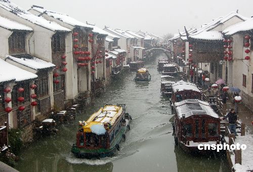 1月27日,蘇州迎來了今年以來的最大范圍的強降雪天氣,雖說給市民的出行帶來不便,但古色古香的山塘街也被白雪包裹,呈現(xiàn)出一種幽靜安寧的景色,吸引了大批的游客前來觀賞。中新社發(fā) 邱勇 攝