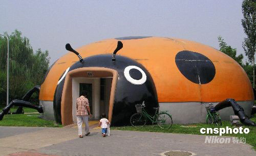 北京公廁在2008年發(fā)展中愈來(lái)愈千奇百怪,為目前北京將要開(kāi)幕的殘奧會(huì)增加了色彩。圖為朝陽(yáng)公園的七星瓢蟲(chóng)公廁博得廣大兒童的認(rèn)可、喜愛(ài)。中新社發(fā) 鄒憲 攝