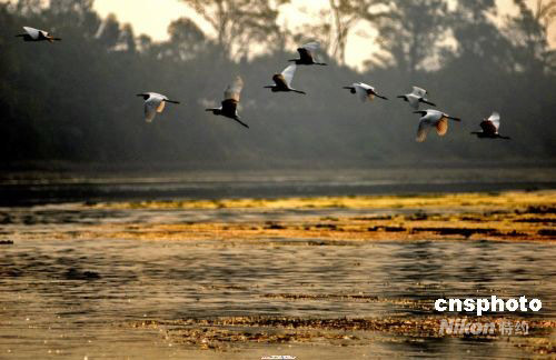 2008年9月19日,一群白鷺在廣西桂林漓江江面上嬉戲。這幾年隨著桂林市生態(tài)環(huán)境及人為環(huán)境的改善,飛來桂林市的白鷺、野鴨等鳥類數(shù)量明顯增加,經(jīng)常能看到珍稀鳥類在漓江上翩翩飛舞的景象。中新社發(fā) 何偉 攝