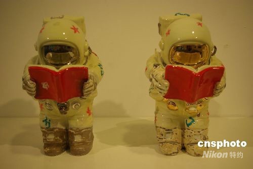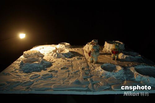 9月24日,中國航天員登上月球的作品在北京798藝術(shù)區(qū)畫廊中展出,吸引了許多觀眾的目光。中新社發(fā) 九州 攝