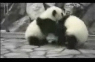 兩只大熊貓打得不依不饒,看上去它們沒有明確的攻擊部位,打斗中沒有一聲吼叫,沒有咬得頭破血流,讓人弄不清是假打還是真打。