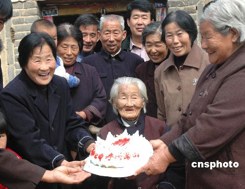 10月18日,河南省社旗縣饒良鎮(zhèn)二戶崗102歲的李秀榮老人與她的大家庭的90多位成員歡聚一堂,喜迎“重陽(yáng)節(jié)”。中新社發(fā) 楊銀鵬 攝