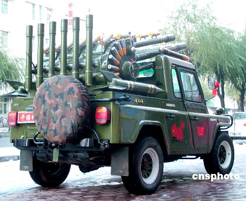 10月21日,一輛酷似軍用戰(zhàn)車的“禮炮車”出現(xiàn)在黑龍江小鎮(zhèn)。當日,黑龍江省牡丹江地區(qū)的穆棱市八面通鎮(zhèn)上,一家婚慶禮儀公司推出婚慶“禮炮車”服務(wù)項目,頗讓生活在小鎮(zhèn)上的居民感到新鮮。中新社發(fā) 莊文斌 攝