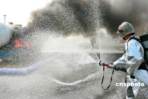 10月26日,蘇州工業(yè)園區(qū)舉行了一次針對道路運輸危險化學品事故應(yīng)急救援實戰(zhàn)演練。該區(qū)公安、消防、衛(wèi)生、環(huán)保安監(jiān)等相關(guān)部門聯(lián)合參加了此次應(yīng)急救援、快速反應(yīng)和協(xié)調(diào)作戰(zhàn)等綜合演練。中新社發(fā) 蘇秀 攝