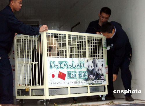 10月28日下午,經(jīng)過近兩天長途飛行的旅日大熊貓雙胞胎“隆浜”和“秋浜”回到了故鄉(xiāng)成都,將在成都大熊貓繁育研究基地開始新的生活。按照國家規(guī)定,它們將在這個新家經(jīng)過二至三個月的隔離檢疫以及飲食、氣候、環(huán)境等方面的調(diào)整,之后再與中外游客見面。中新社發(fā) 魏姝 攝