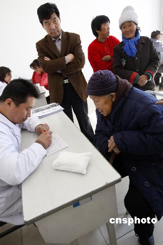 11月1日,北京市扶貧濟困春風(fēng)行動辦公室和博愛堂中醫(yī)門診部聯(lián)合來到北京平谷劉家店,為農(nóng)民進行義診活動。由于距離城市太遠(yuǎn),許多農(nóng)民沒有機會去城市大醫(yī)院看病,使的小病慢慢積累成疾病,醫(yī)療下鄉(xiāng)活動使得農(nóng)民在第一時間就能得到醫(yī)療幫助。中新社發(fā) 杜洋 攝