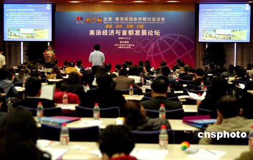 11月5日,第11屆北京·香港經(jīng)濟(jì)合作研討洽談會之“奧運經(jīng)濟(jì)與首都發(fā)展”論壇在北京舉行,兩地與會人員共同探討和北京奧運有關(guān)的話題。中新社發(fā) 張宇 攝