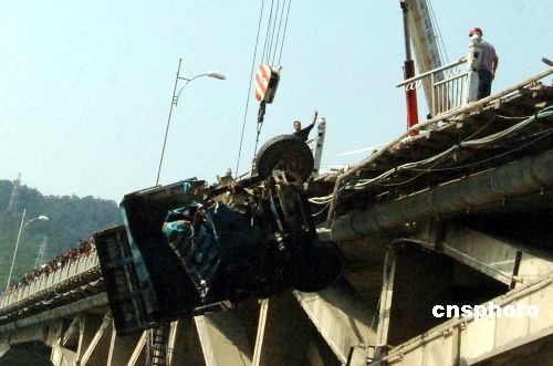 十一月十四日,營(yíng)救人員啟動(dòng)大型吊車正在將一輛墜入閩江的車輛打撈上岸。當(dāng)天凌晨四時(shí)許,一輛從福州建新鎮(zhèn)開往鼓樓區(qū)方向的微型小貨車,行駛至洪山橋路面時(shí)與另一輛從相反方向駛來(lái)的運(yùn)沙車相撞后墜入閩江中,至少造成兩名司機(jī)死亡。福州市公安、消防等部門緊急出動(dòng),組織營(yíng)救,啟動(dòng)大型吊車先后將兩輛墜江車輛和一名遇難司機(jī)尸體打撈上岸。 中新社發(fā) 劉可耕 攝