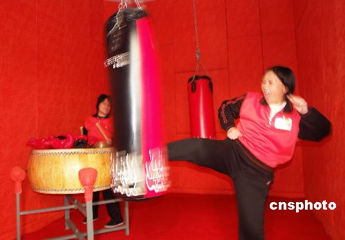 2007年11月14日,勞教人員在河南省女子勞教所的宣泄室內(nèi)用力擊打沙袋,宣泄心中的苦惱。宣泄室是該所勞教人員心理矯治中心新開設(shè)的心理治療項目,室內(nèi)的墻壁都用厚厚的海棉包裹,并配備了沙袋、鑼鼓等供勞教人員使用,針對一些內(nèi)向的學(xué)員,起到了很好地的心理治療作用。據(jù)介紹,宣泄室只是心理治療的一個環(huán)節(jié),只有與其他的心理矯治手段相配合才能真正緩解勞教人員的心理壓力,樹立起重樹新生的信心。中新社發(fā) 馬健 攝