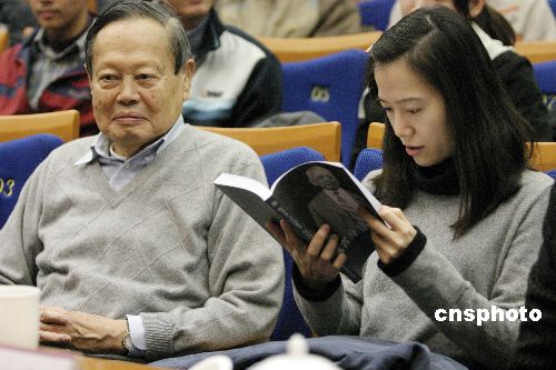 12月3日,數(shù)學(xué)大師陳省身逝世三周年紀(jì)念大會(huì)暨《陳省身與中國(guó)數(shù)學(xué)》新書首發(fā)儀式在天津舉行。陳省身先生好友、著名物理學(xué)家楊振寧攜妻子翁帆出席了新書首發(fā)儀式。中新社發(fā) 孟憲君 攝