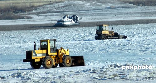 12月24日,大型機(jī)械在封凍的中俄界河黑龍江上推冰道。據(jù)黑河口岸披露:為順利開展黑河口岸與俄羅斯布市口岸冰上汽車跨國運(yùn)輸,12月26日,中方運(yùn)輸領(lǐng)導(dǎo)小組成員將赴俄羅斯布拉戈維申斯克市與俄方運(yùn)輸領(lǐng)導(dǎo)小組進(jìn)行會(huì)談。預(yù)計(jì)近期將開通黑龍江上汽車運(yùn)輸,封凍的黑龍江將成為國際運(yùn)輸?shù)拇笸ǖ。中新社發(fā) 邱齊龍 攝