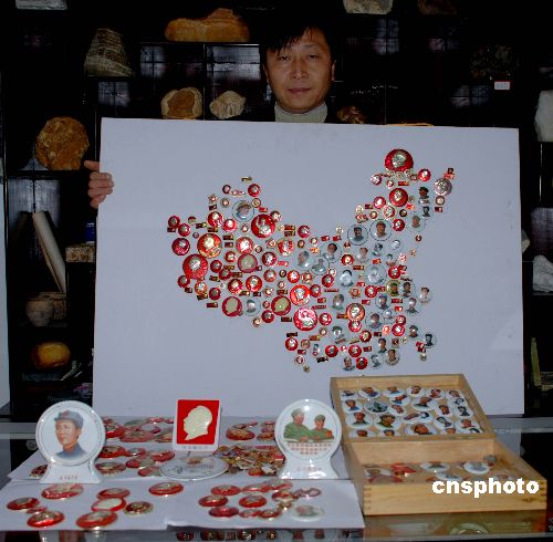 12月26日,江西婺源紫陽鎮(zhèn)收藏者孫根保展示用毛主席像章編制成“中國地圖”。當(dāng)日,為紀念偉大領(lǐng)袖毛澤東誕辰114周年,孫根保用1000多枚毛主席像章編制成“中國地圖”。中新社發(fā) 王國紅 攝