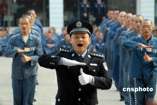 2007年12月26日,海南省瓊山監(jiān)獄舉行服刑人員“心靈手語操”比賽,7支代表隊共700多名服刑人員參賽,他們以此特別方式迎接即將到來的新年。服刑人員在手語操比賽的表演中,得到傳統(tǒng)文化的熏陶,增強了積極改造的信心。中新社發(fā) 善平 攝