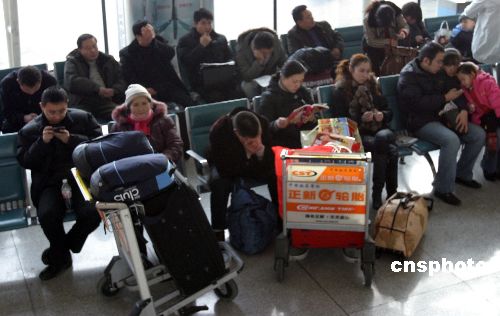 1月2日上午,烏魯木齊國際機(jī)場出現(xiàn)大霧天氣,致使部分航班延誤,數(shù)百名乘客滯留機(jī)場。記者從機(jī)場問訊處獲悉,因?yàn)豸斈君R國際機(jī)場被大霧籠罩,能見度不符合飛機(jī)降落標(biāo)準(zhǔn),成都—烏魯木齊、北京—烏魯木齊等國內(nèi)航班被迫備降敦煌機(jī)場,導(dǎo)致從烏魯木齊飛往成都和北京等地的乘客滯留機(jī)場。據(jù)了解,烏魯木齊到庫爾勒、伊寧等地的疆內(nèi)航班沒有受到影響,仍可正常起飛。截至發(fā)稿時(shí),機(jī)場大霧仍未退去,乘客們?nèi)栽诘却鞖夂棉D(zhuǎn)。中新社發(fā) 李雄心 攝