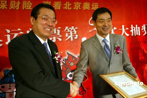 一月四日,著名表演藝術家濮存昕受邀為“擁有人保財險,喜看北京奧運——萬張奧運門票大抽獎”活動進行第三次抽獎。在活動上,濮存昕被北京2008年奧運會保險合作伙伴中國人保財險聘為公司奧運形象大使。他高興地表示,自己已經(jīng)提出申請成為北京殘奧會志愿者, 希望參與更多的社會公益事業(yè)。中新社發(fā) 楊可佳 攝