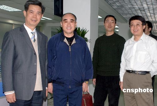 1月7日,乒乓球前世界冠軍莊則棟(左二)做客中國新聞社時,在中新社社長郭招金(左一)等人陪同下參觀中國新聞網(wǎng)。中新社發(fā) 鄒憲 攝