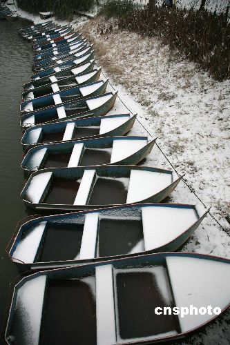 1月12日晚,江城武漢迎來2008年第一場雪,當晚,該市氣象臺發(fā)布道路結(jié)冰橙色預(yù)警信號。1月13日,武漢城區(qū)被積雪覆蓋。中新社發(fā) 王振武 攝