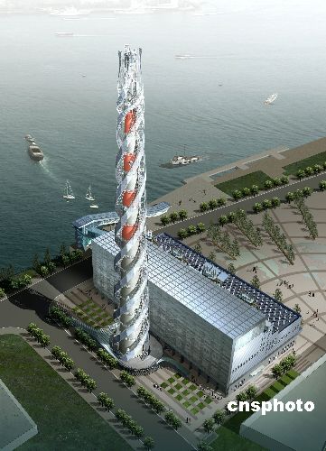 一月十四日,上海世博局公布,“世博和諧塔”將落戶中國二0一0年上海世博會(huì)園區(qū),由當(dāng)?shù)乩蠌S房煙囪改建而成。這一外觀新奇的煙囪狀“世博和諧塔”,建成后將集互動(dòng)娛樂于一身,成為五點(diǎn)二八平方公里世博園內(nèi)的一個(gè)觀景制高點(diǎn)。施工方透露,“世博和諧塔”每小時(shí)載客量預(yù)計(jì)可達(dá)六百五十人以上,夜間景觀則更加光彩奪目,有望成為黃浦江畔的時(shí)尚新地標(biāo)。(效果圖) 世博局 供圖
