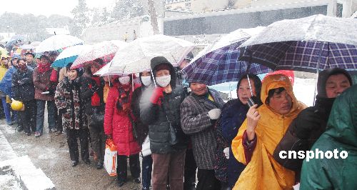 圖:近千市民冒雪排隊(duì)領(lǐng)取臘八粥