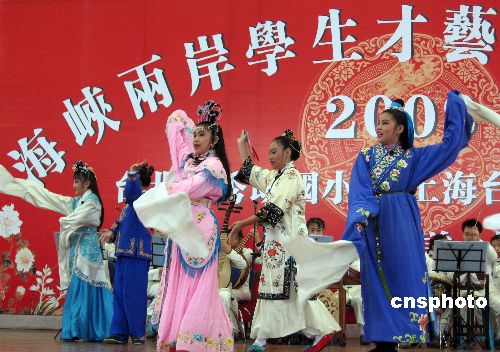 圖為臺北縣秀朗“國小”的學(xué)生在表演歌仔戲。