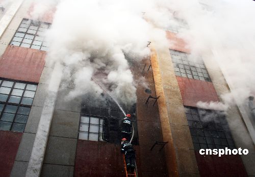 1月22日下午1點鐘左右,位于丹東市錦山大街和公安后街交界處的一個家具廠庫房發(fā)生大火,大火迅速蔓延到整個樓層,濃煙彌漫了整個廠區(qū)和相隔僅幾十米的居民區(qū),而且當(dāng)時三樓以上還有部分工人在樓內(nèi)上班。險情發(fā)生后,丹東消防部門從各消防中隊迅速調(diào)派20多輛消防車趕到現(xiàn)場進(jìn)行滅火和人員救援。下午三點多鐘,大火被控制住,樓內(nèi)的工人也安全撤出。據(jù)了解,由于三樓的工人對供暖設(shè)施進(jìn)行拆除,焊接時引燃了二樓庫房內(nèi)的家具導(dǎo)致了這場大火。中新社發(fā) 陳浩浩 攝